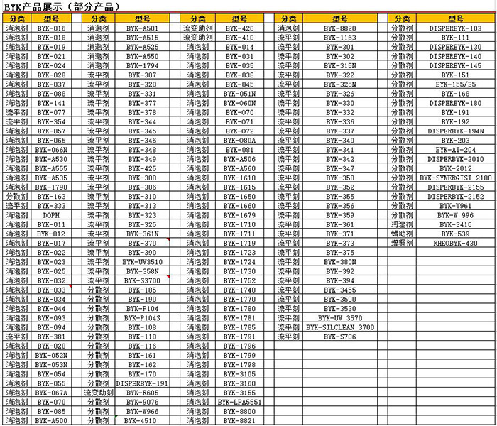 畢克化學是全球領先的特種化學品供應商之一。公司的創新型助劑和差異化解決方案可優化產品和材料特性以及生產和應用過程。 除此之外,畢克助劑還可改善耐刮擦性和表麵光澤度,材料的機械強度和流動性能,以及諸如UV和光穩定性或阻燃性之類的特性。 在質保領域,畢克化學的測量和測試儀器可有效評估外觀和物理性能。